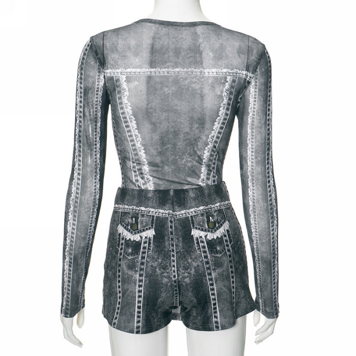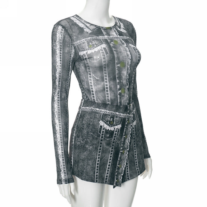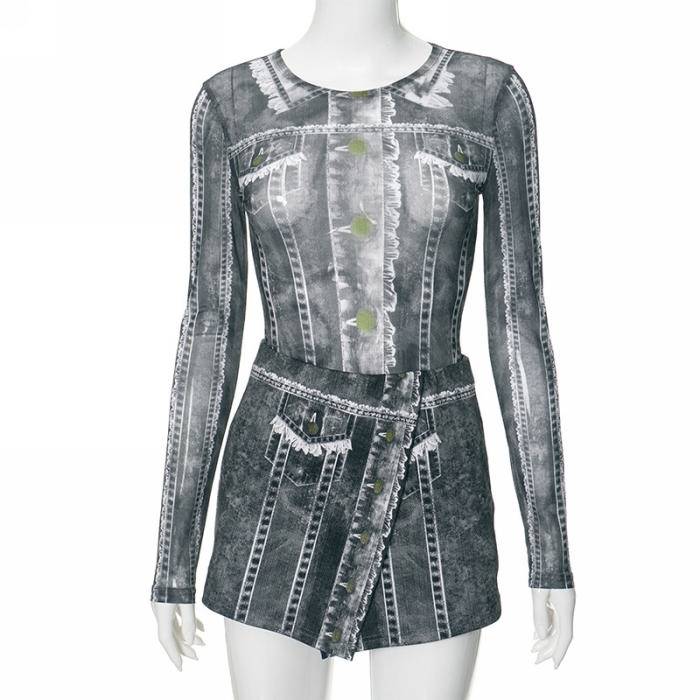 (Real Image)2023 Styles Women Sexy&Fashion Autumn/Winter TikTok&Instagram Styles Print Mesh Two Piece DressSKU: #CF47792-1