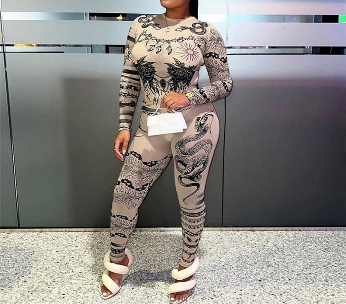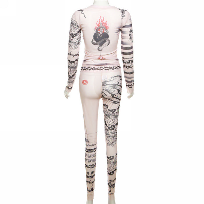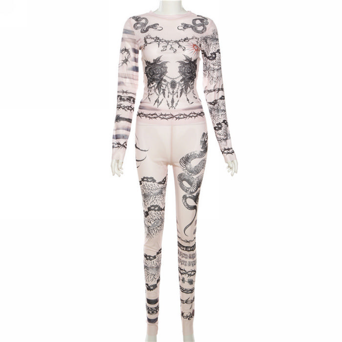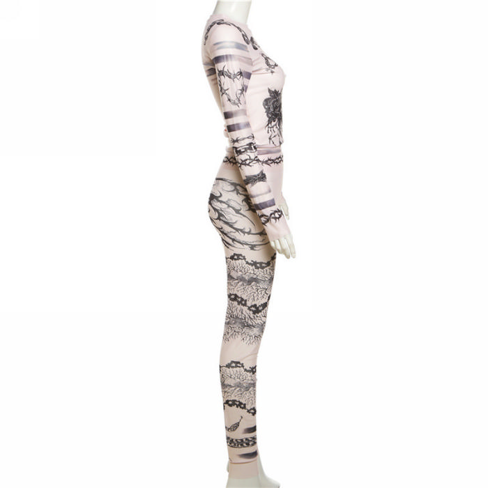 (Real Image)2023 Styles Women Sexy&Fashion Autumn/Winter TikTok&Instagram Styles Print Mesh Two Piece SuitSKU: #CF77627-1