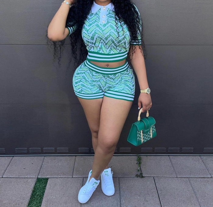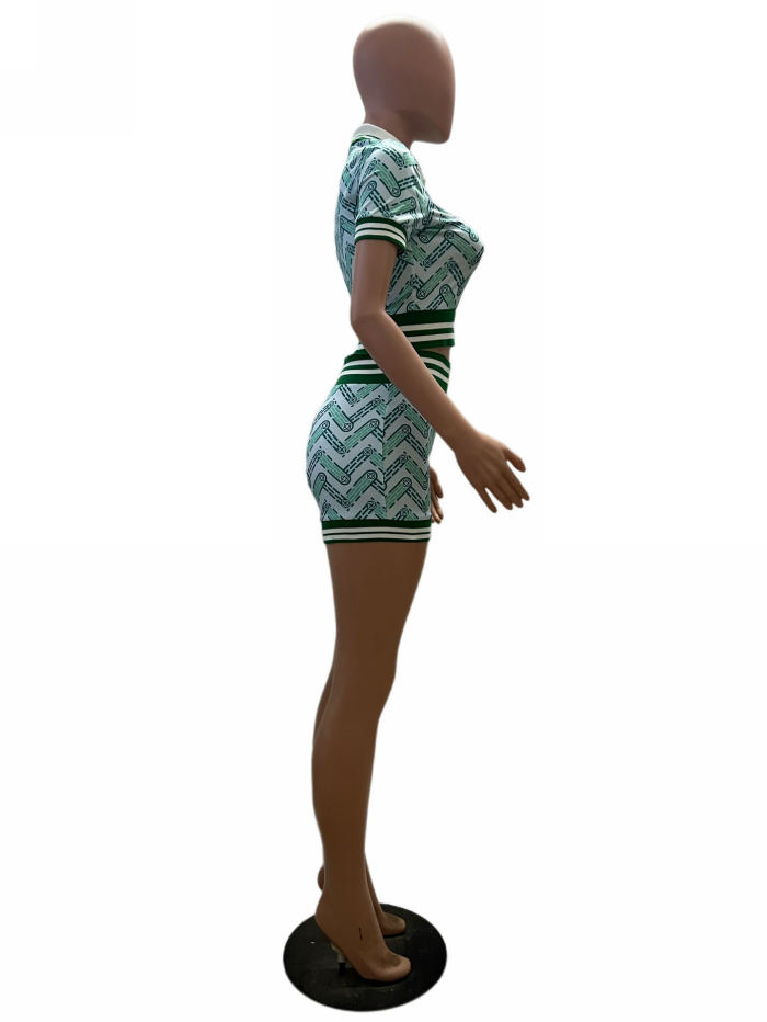 (Real Image)2023 Styles Women Sexy&Fashion Autumn/Winter TikTok&Instagram Styles Print Short Two Piece SuitSKU: #TP119-1