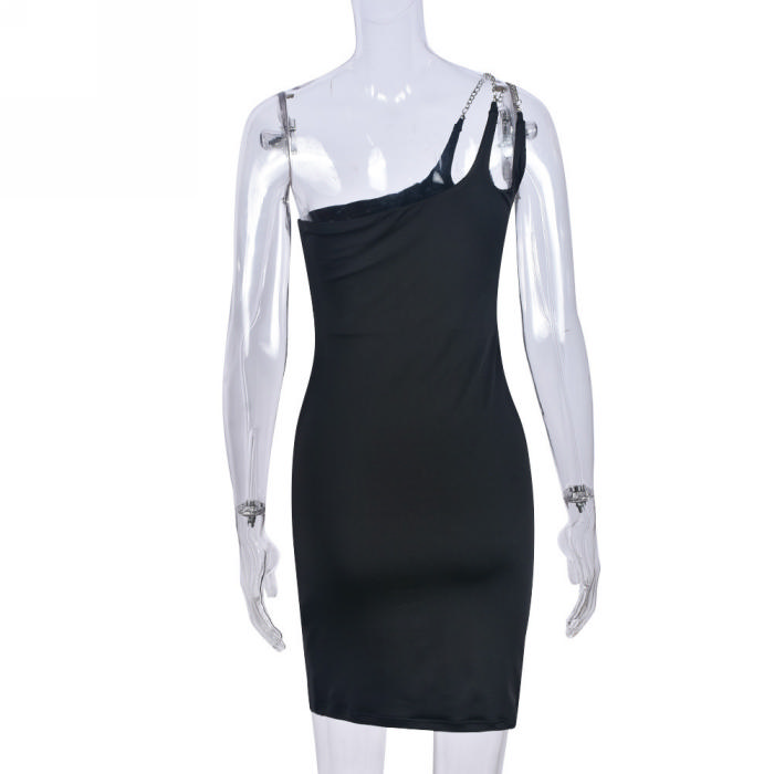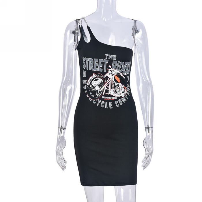 (Real Image)2023 Styles Women Sexy&Fashion Autumn/Winter TikTok&Instagram Styles Print Single Shoulder Mini DressSKU: #CF59733-1