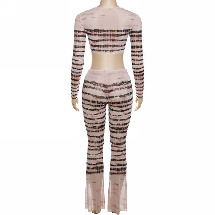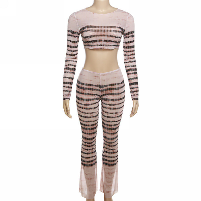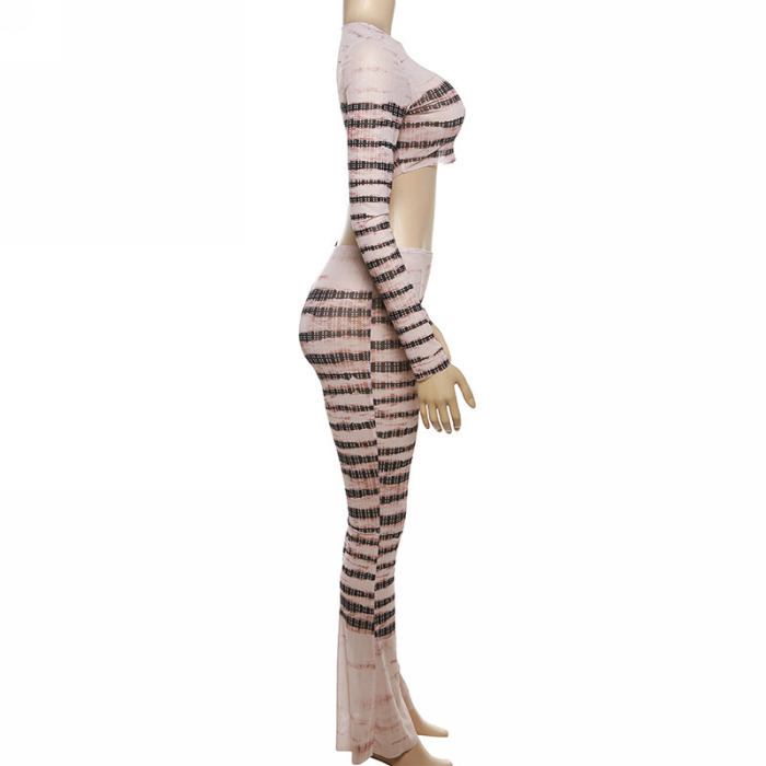 (Real Image)2023 Styles Women Sexy&Fashion Autumn/Winter TikTok&Instagram Styles Print Striped Two Piece SuitSKU: #CF77629-1