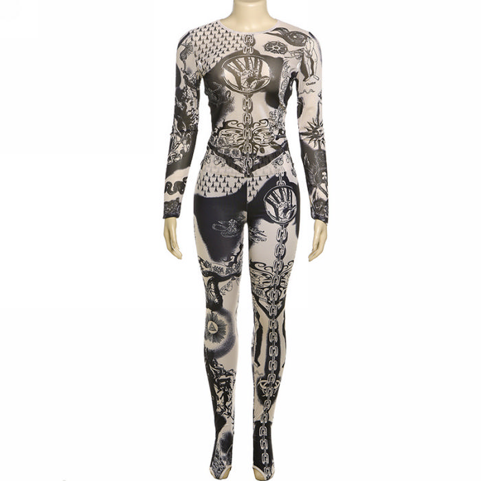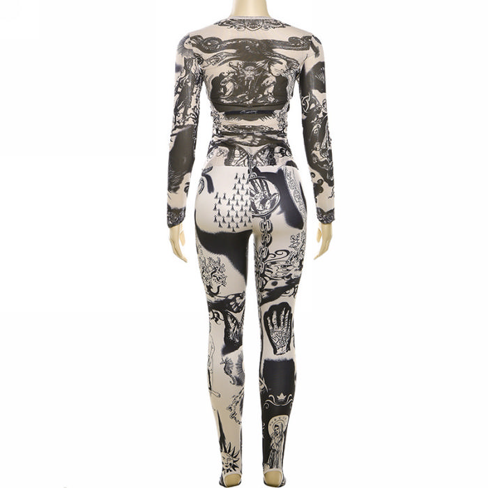 (Real Image)2023 Styles Women Sexy&Fashion Autumn/Winter TikTok&Instagram Styles Print Two Piece SuitSKU: #CF77710-1