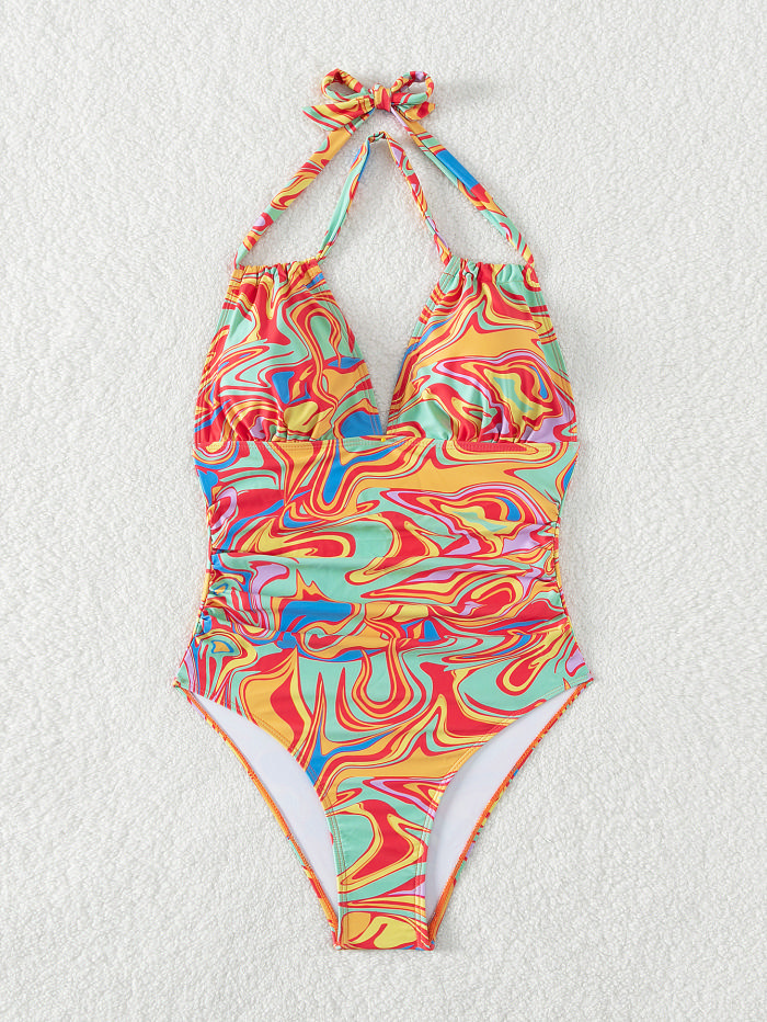 (Real Image)2023 Styles Women Sexy&Fashion Autumn/Winter TikTok&Instagram Styles Print V Neck One Piece SwimwearSKU: #CF56095-1