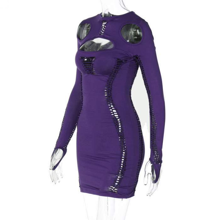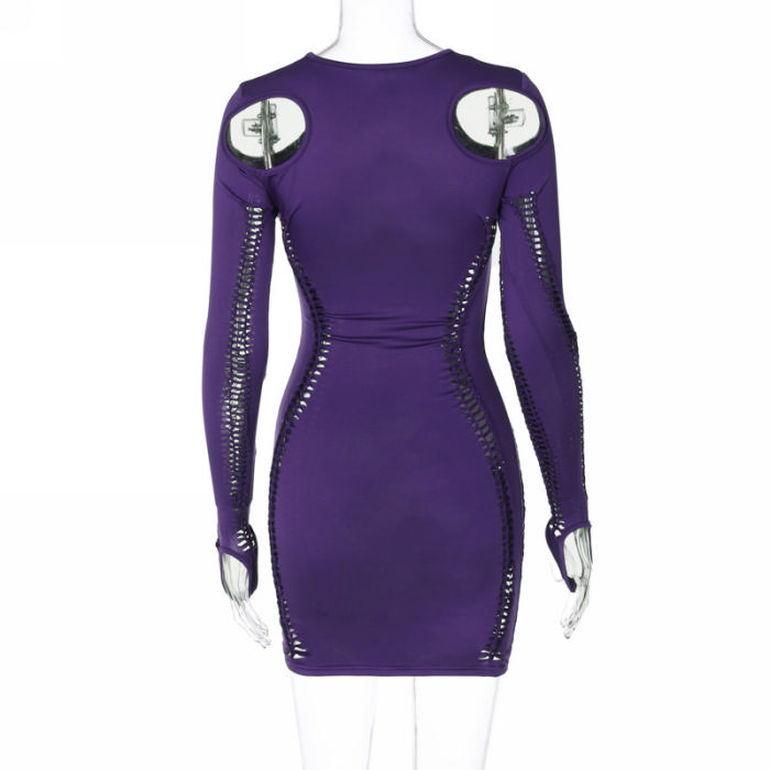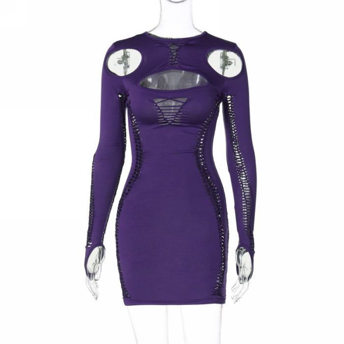 (Real Image)2023 Styles Women Sexy&Fashion Autumn/Winter TikTok&Instagram Styles Ripped Cut Out Long Sleeve Mini DressSKU: #CF88170-1