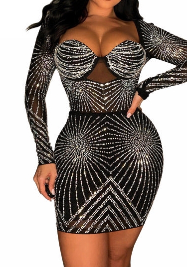 (Real Image)2023 Styles Women Sexy&Fashion Autumn/Winter TikTok&Instagram Styles Sequins Long Sleeve Club DressSKU: #XF73047-1