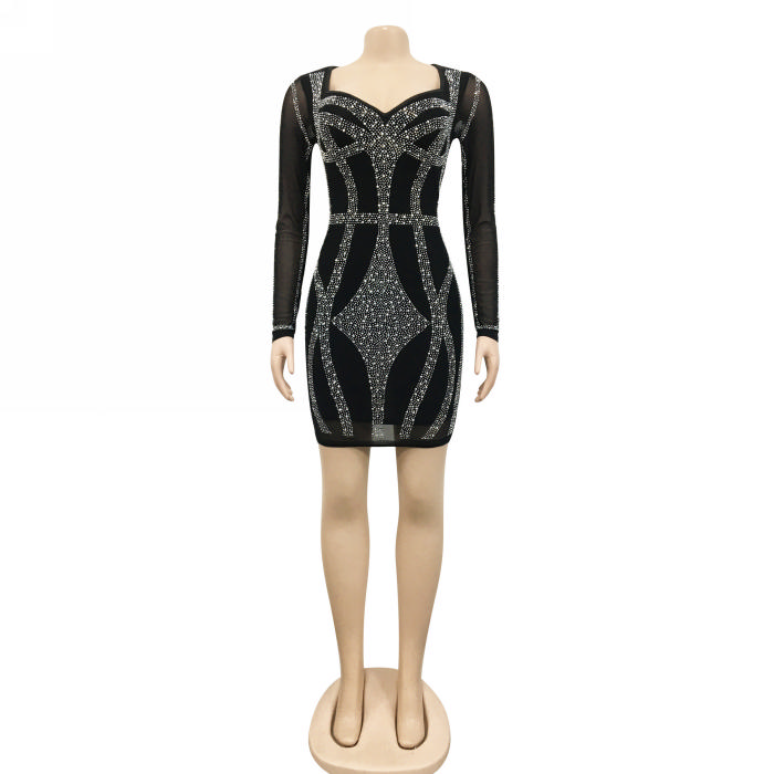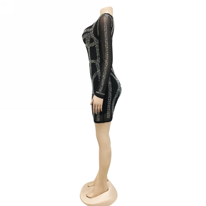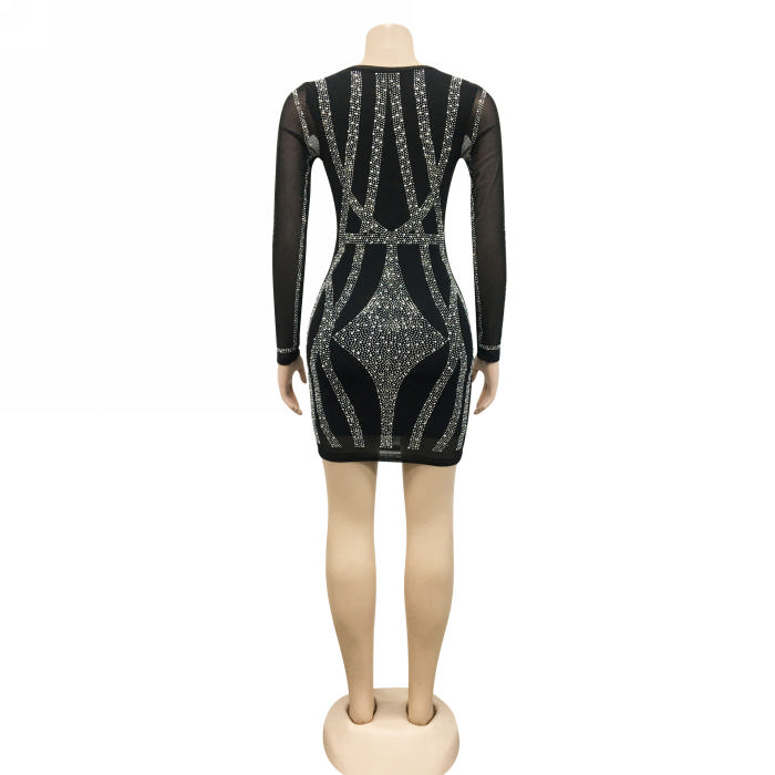 (Real Image)2023 Styles Women Sexy&Fashion Autumn/Winter TikTok&Instagram Styles Sequins Long Sleeve Mesh Mini DressSKU: #XF73037-1