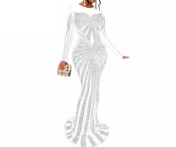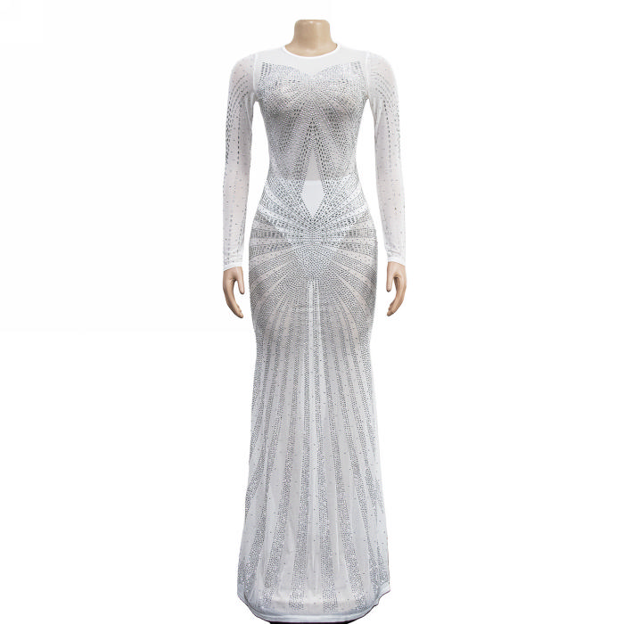 (Real Image)2023 Styles Women Sexy&Fashion Autumn/Winter TikTok&Instagram Styles Sequins Mesh Long Sleeve Maxi DressSKU: #XF73043-6