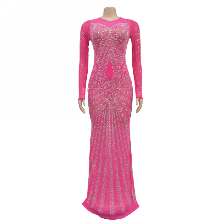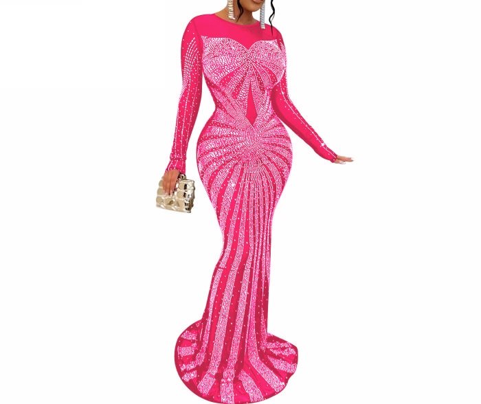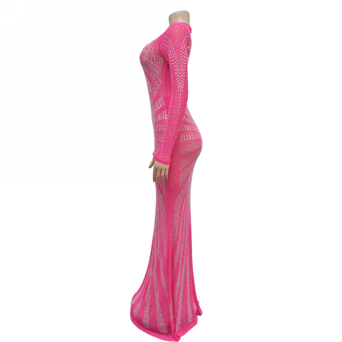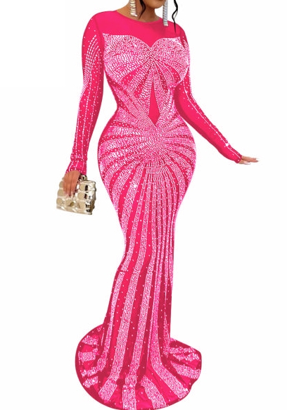 (Real Image)2023 Styles Women Sexy&Fashion Autumn/Winter TikTok&Instagram Styles Sequins Mesh Long Sleeve Maxi DressSKU: #XF73043-5