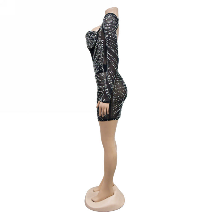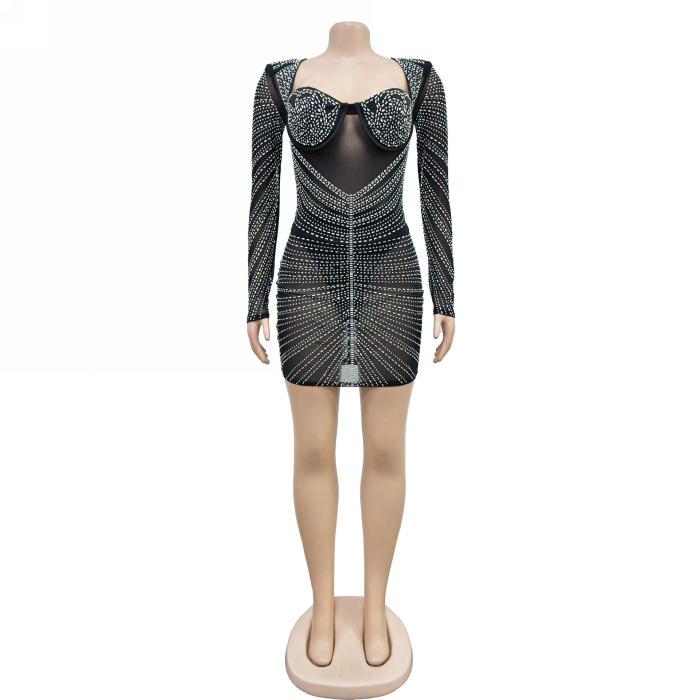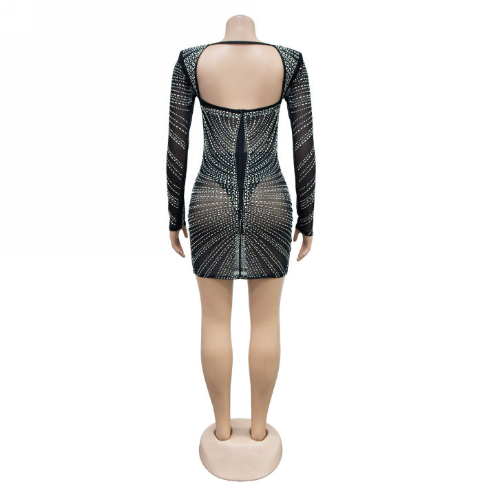 (Real Image)2023 Styles Women Sexy&Fashion Autumn/Winter TikTok&Instagram Styles Sequins Mesh Long Sleeve Mini DressSKU: #XF73004-1