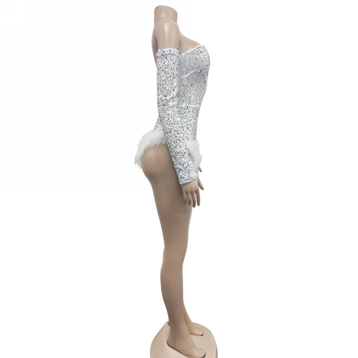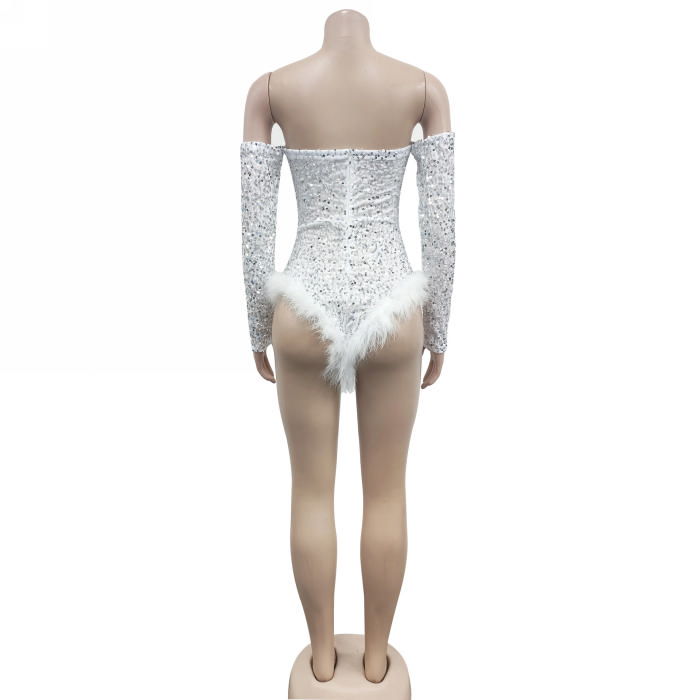 (Real Image)2023 Styles Women Sexy&Fashion Autumn/Winter TikTok&Instagram Styles Sequins Off Shoulder Long Sleeve BodysuitSKU: #XF73033-5