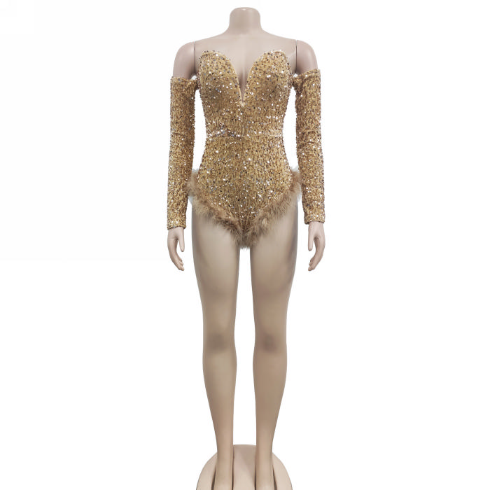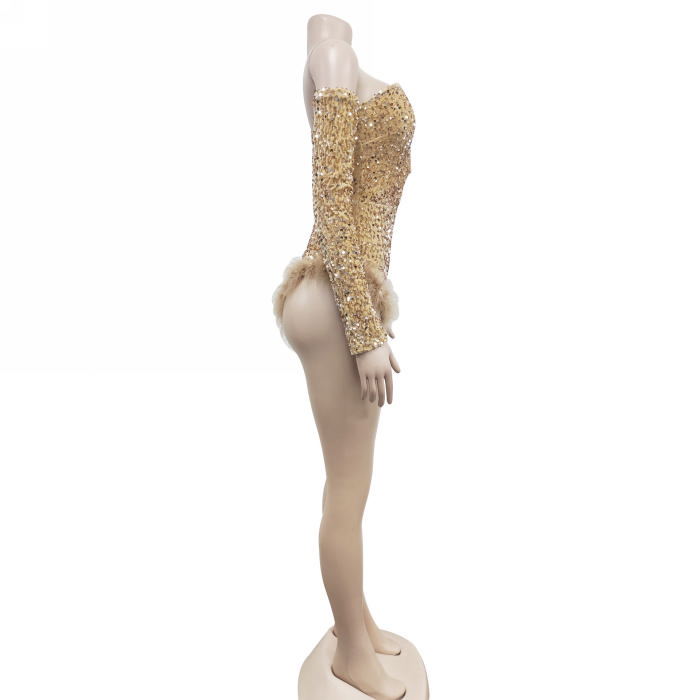 (Real Image)2023 Styles Women Sexy&Fashion Autumn/Winter TikTok&Instagram Styles Sequins Off Shoulder Long Sleeve BodysuitSKU: #XF73033-4