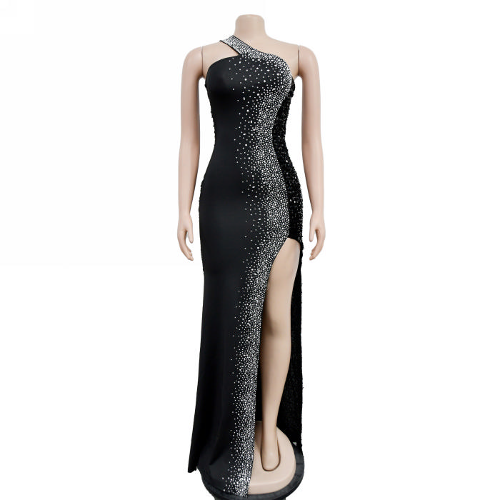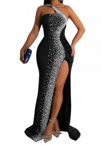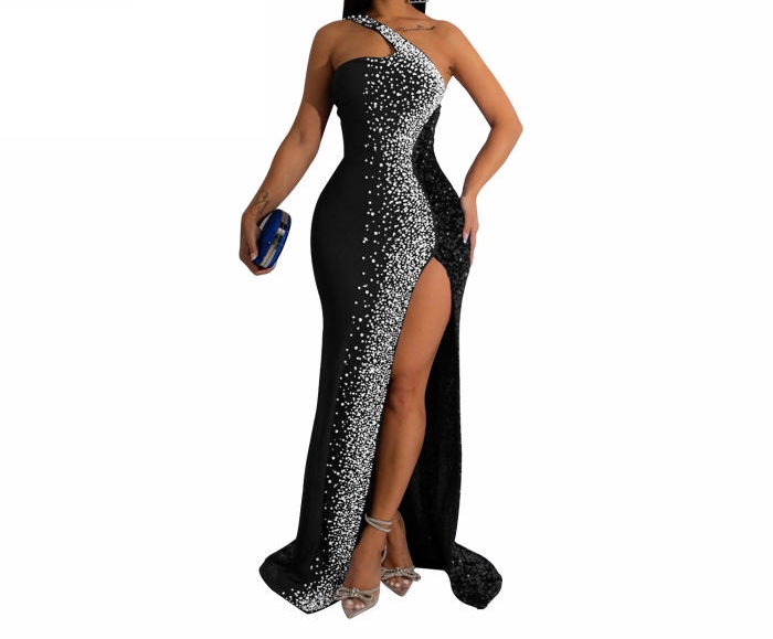(Real Image)2023 Styles Women Sexy&Fashion Autumn/Winter TikTok&Instagram Styles Sequins Single Shoulder Cut Out High Split Maxi DressSKU: #XF73040-1