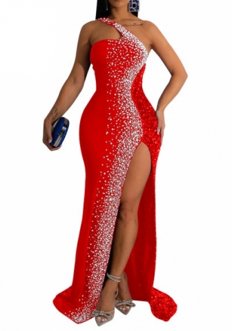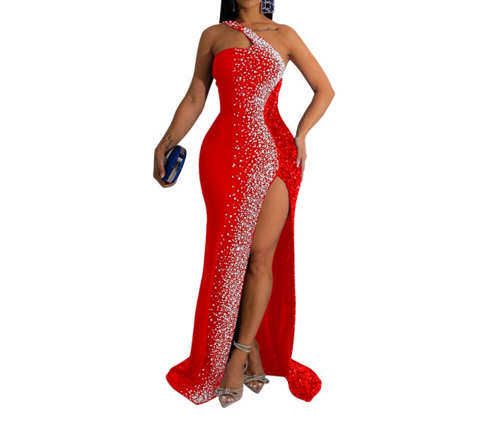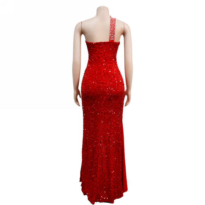 (Real Image)2023 Styles Women Sexy&Fashion Autumn/Winter TikTok&Instagram Styles Sequins Single Shoulder Cut Out High Split Maxi DressSKU: #XF73040-3