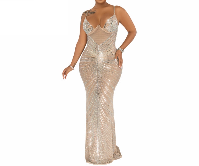 (Real Image)2023 Styles Women Sexy&Fashion Autumn/Winter TikTok&Instagram Styles Sequins Strap Maxi DressSKU: #XF73036-2