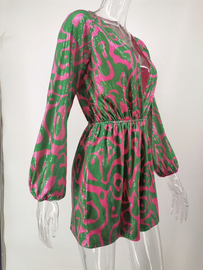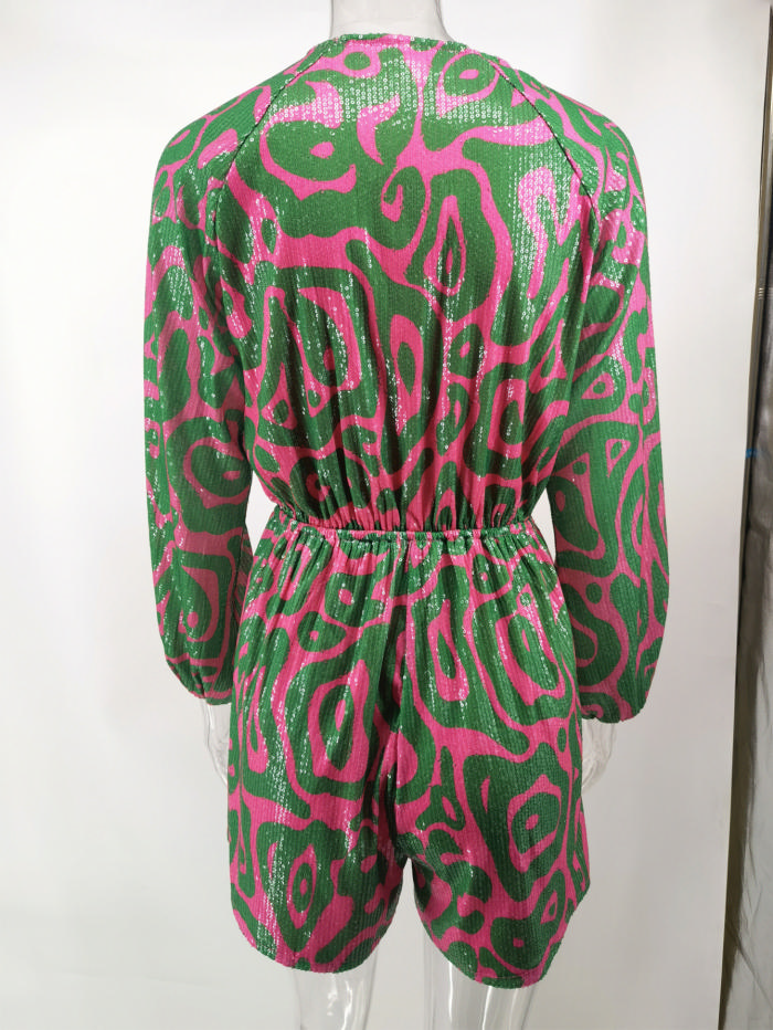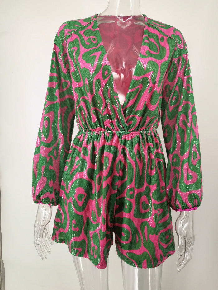 (Real Image)2023 Styles Women Sexy&Fashion Autumn/Winter TikTok&Instagram Styles Sequins V Neck Long Sleeve RomperSKU: #XF71013-1