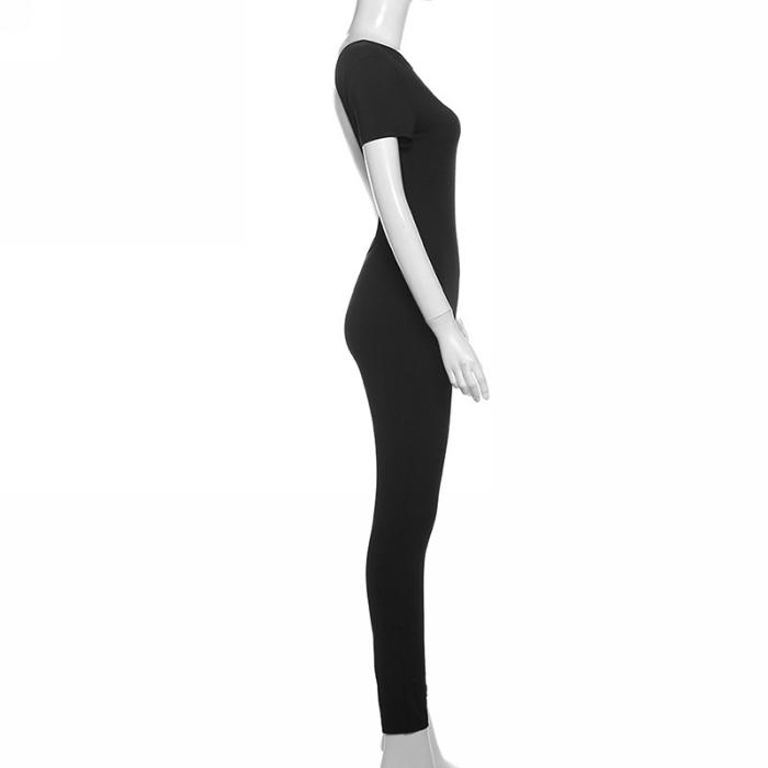 (Real Image)2023 Styles Women Sexy&Fashion Autumn/Winter TikTok&Instagram Styles Short Sleeve Backless JumpsuitSKU: #CF77726-1
