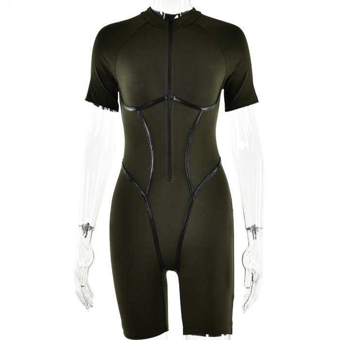 (Real Image)2023 Styles Women Sexy&Fashion Autumn/Winter TikTok&Instagram Styles Short Sleeve Front Zipper RomperSKU: #XF62608-3