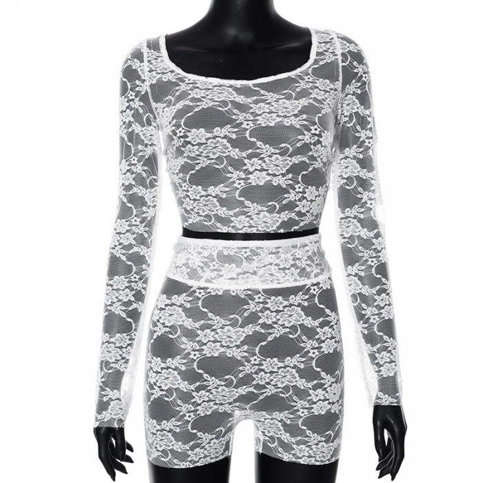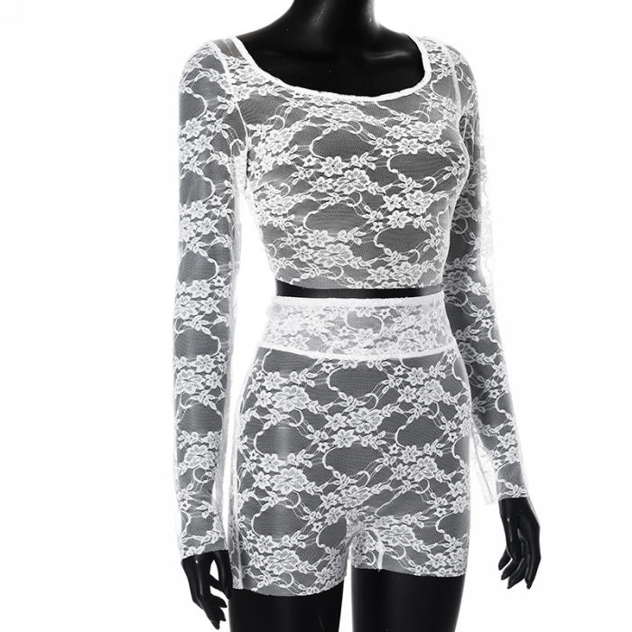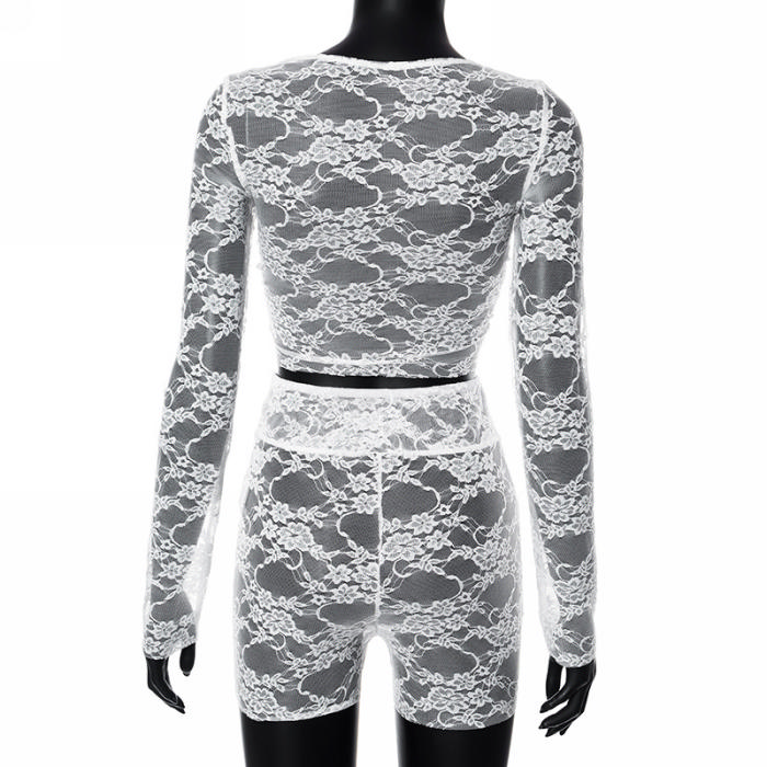 (Real Image)2023 Styles Women Sexy&Fashion Autumn/Winter TikTok&Instagram Styles Short Sleeve Lace White Short Two Piece SuitSKU: #CF47754-1