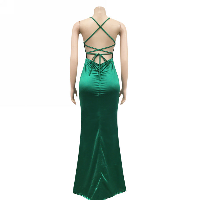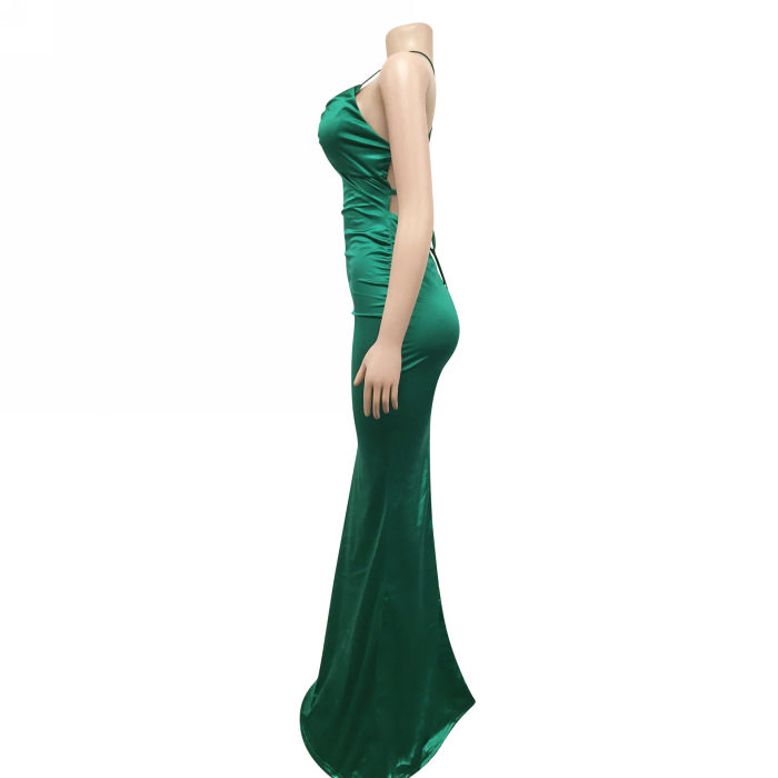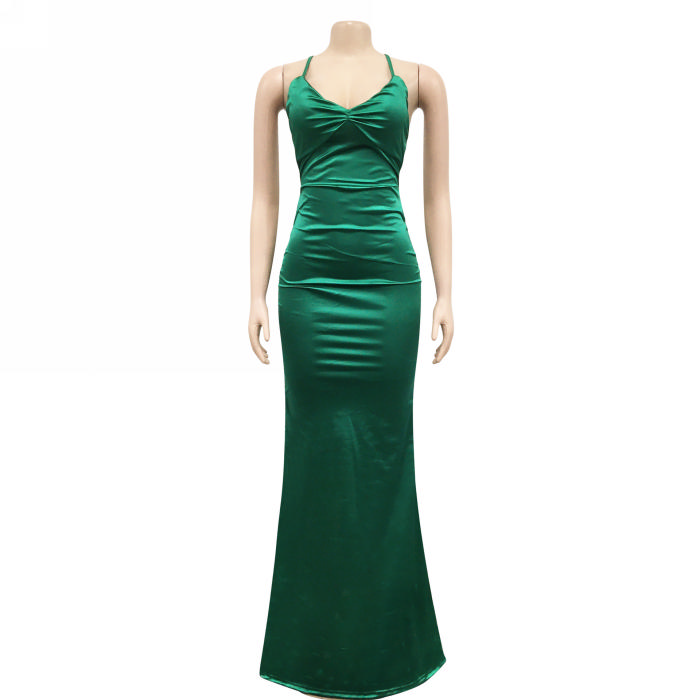 (Real Image)2023 Styles Women Sexy&Fashion Autumn/Winter TikTok&Instagram Styles Silk Strap Maxi DressSKU: #XF73032-1