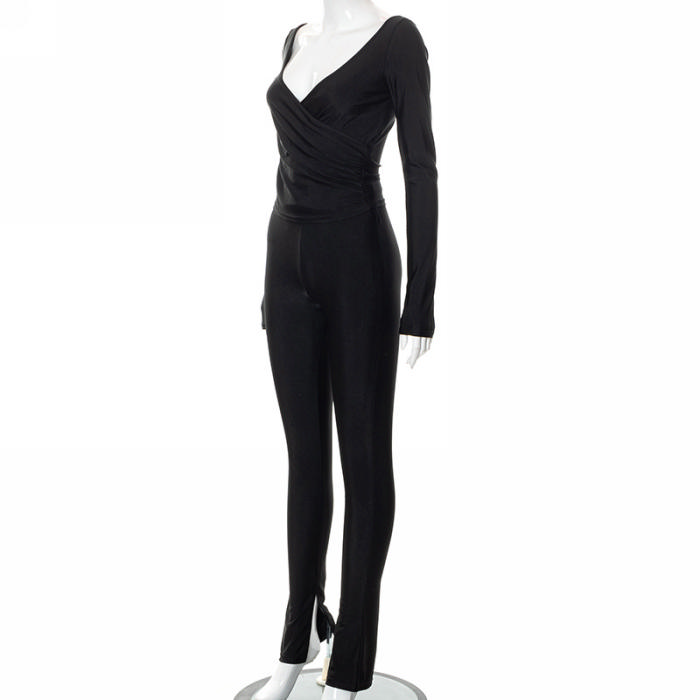(Real Image)2023 Styles Women Sexy&Fashion Autumn/Winter TikTok&Instagram Styles Silk Two Piece SuitSKU: #OU2881-1