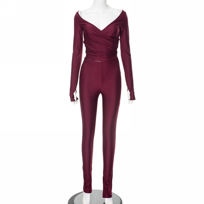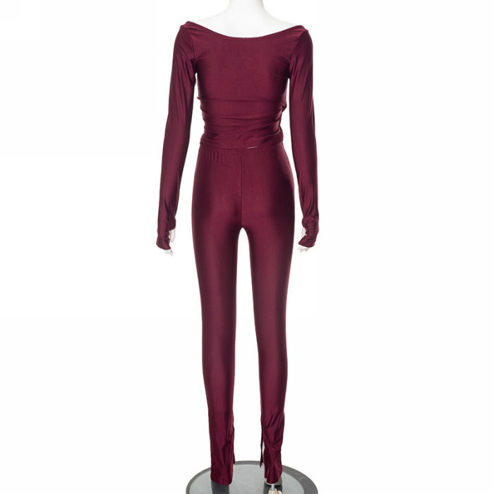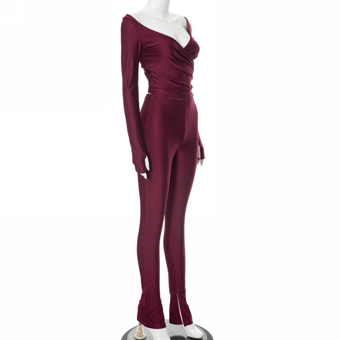 (Real Image)2023 Styles Women Sexy&Fashion Autumn/Winter TikTok&Instagram Styles Silk Two Piece SuitSKU: #OU2881-4