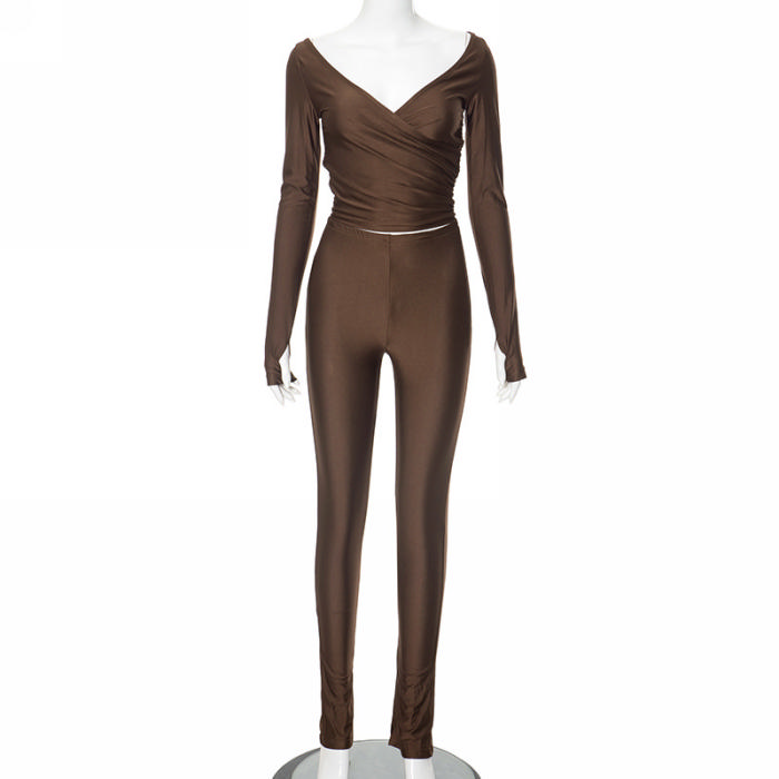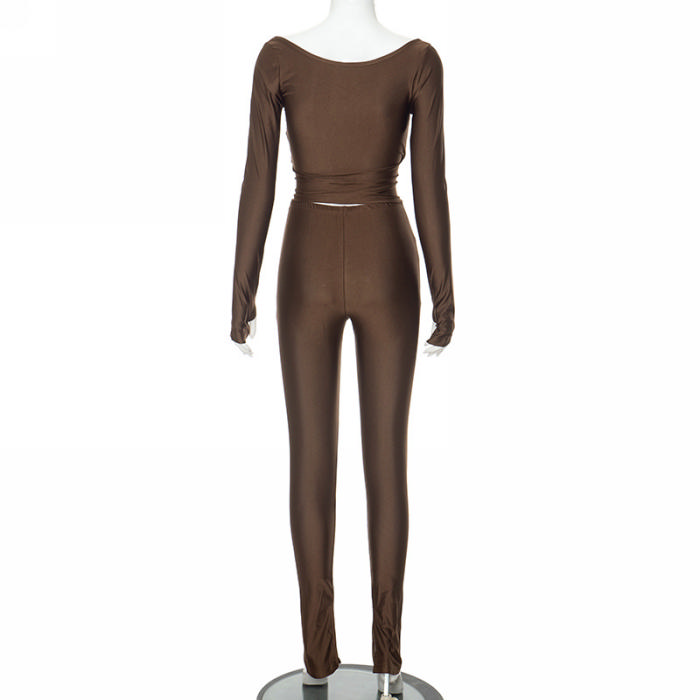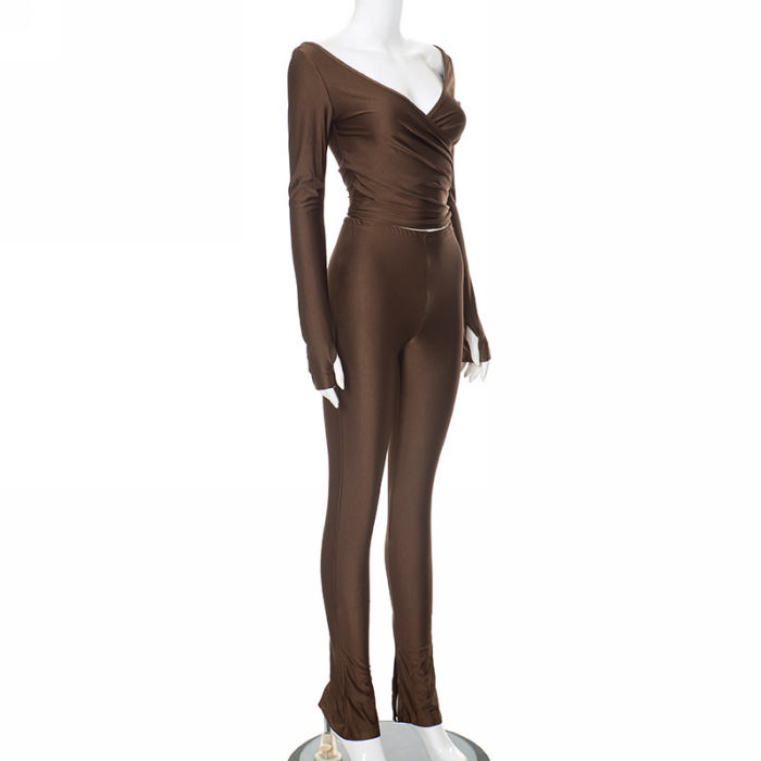 (Real Image)2023 Styles Women Sexy&Fashion Autumn/Winter TikTok&Instagram Styles Silk Two Piece SuitSKU: #OU2881-3