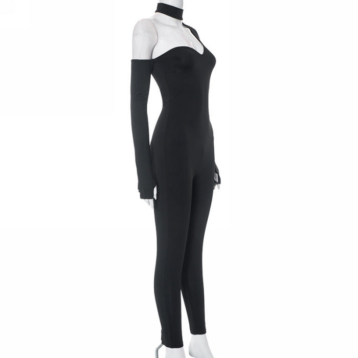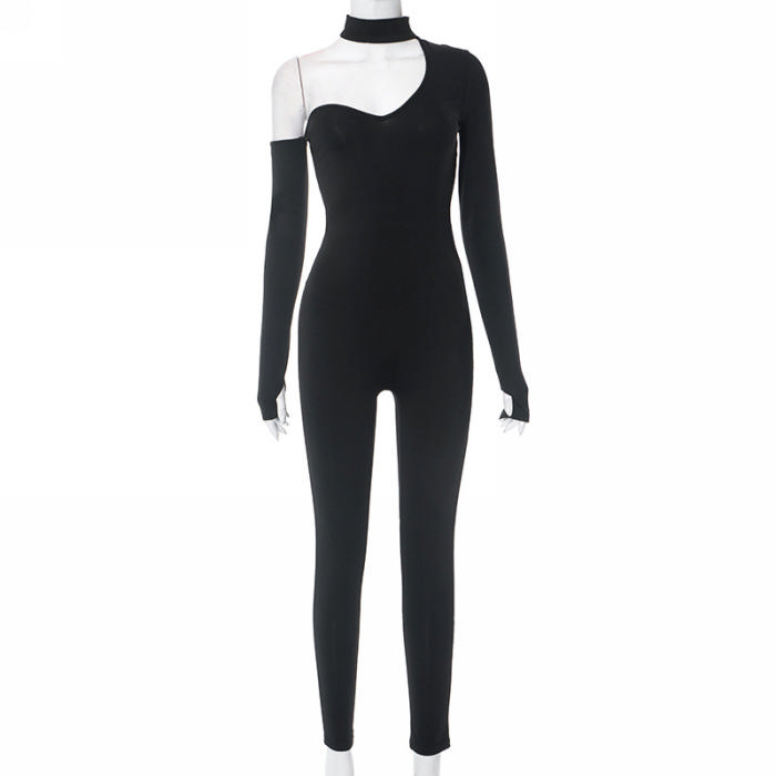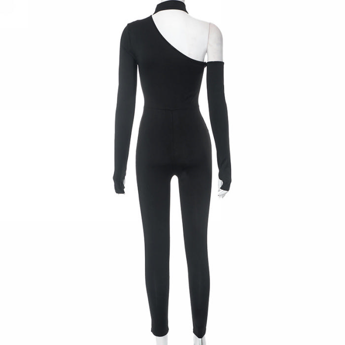 (Real Image)2023 Styles Women Sexy&Fashion Autumn/Winter TikTok&Instagram Styles Single Shoulder Black JumpsuitSKU: #CF47770-1