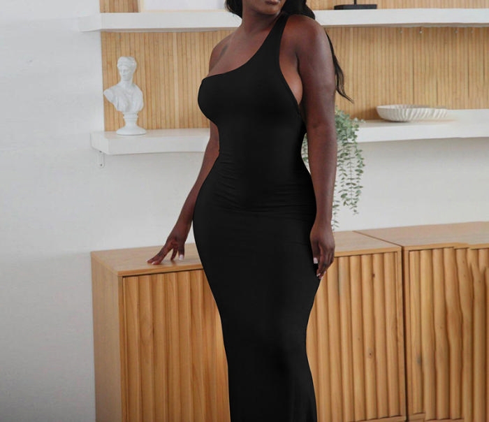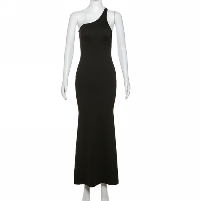 (Real Image)2023 Styles Women Sexy&Fashion Autumn/Winter TikTok&Instagram Styles Single Shoulder Maxi DressSKU: #CF77744-1
