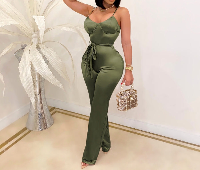 (Real Image)2023 Styles Women Sexy&Fashion Autumn/Winter TikTok&Instagram Styles Strap Jumpsuit With Waist TieSKU: #XF73046-5