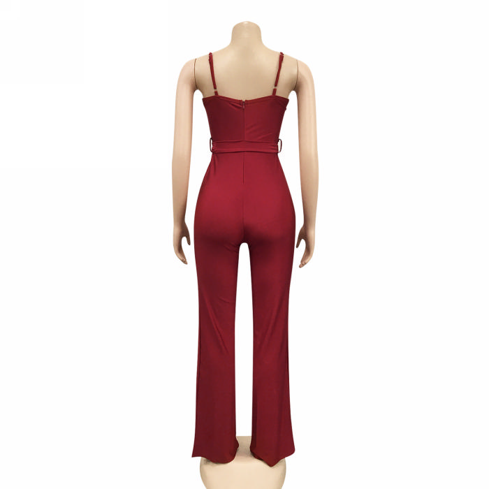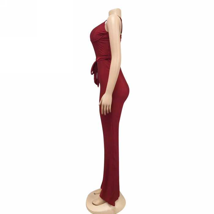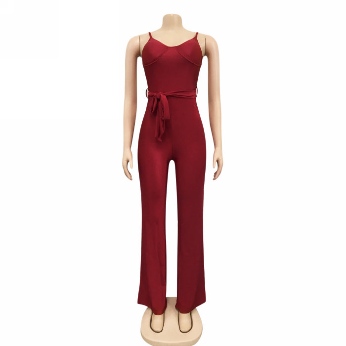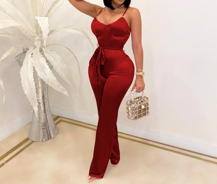 (Real Image)2023 Styles Women Sexy&Fashion Autumn/Winter TikTok&Instagram Styles Strap Jumpsuit With Waist TieSKU: #XF73046-3