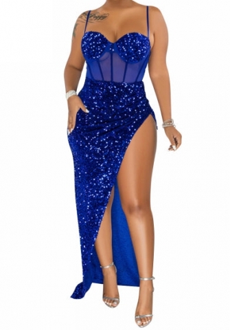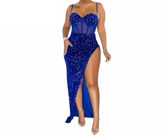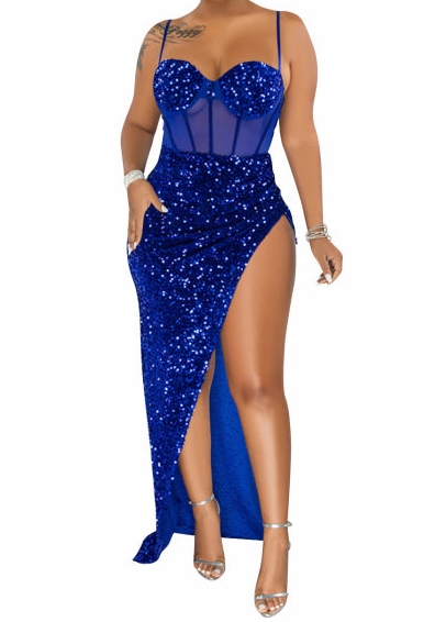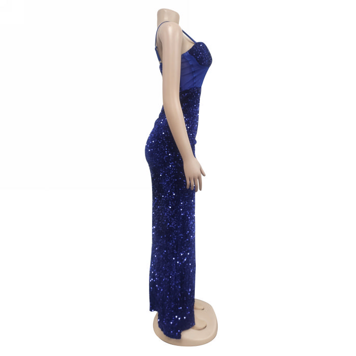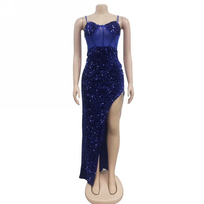 (Real Image)2023 Styles Women Sexy&Fashion Autumn/Winter TikTok&Instagram Styles Strap Sequins Maxi DressSKU: #XF73044-3