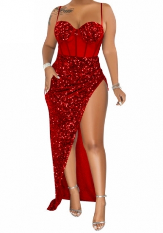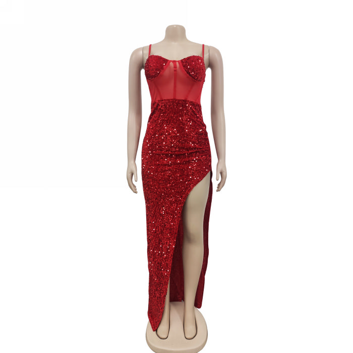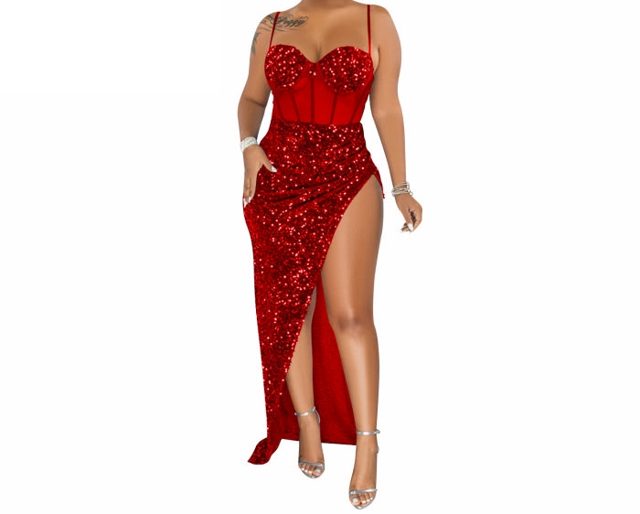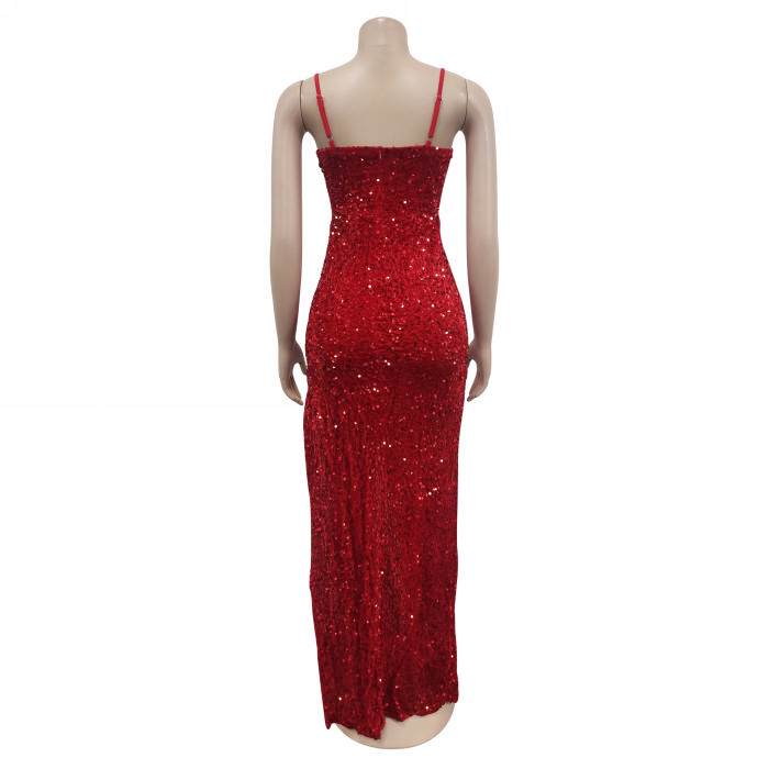 (Real Image)2023 Styles Women Sexy&Fashion Autumn/Winter TikTok&Instagram Styles Strap Sequins Maxi DressSKU: #XF73044-2
