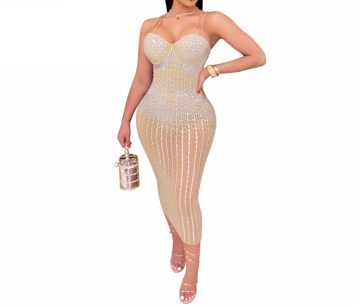 (Real Image)2023 Styles Women Sexy&Fashion Autumn/Winter TikTok&Instagram Styles Strap Sequins Midi DressSKU: #XF73034-2