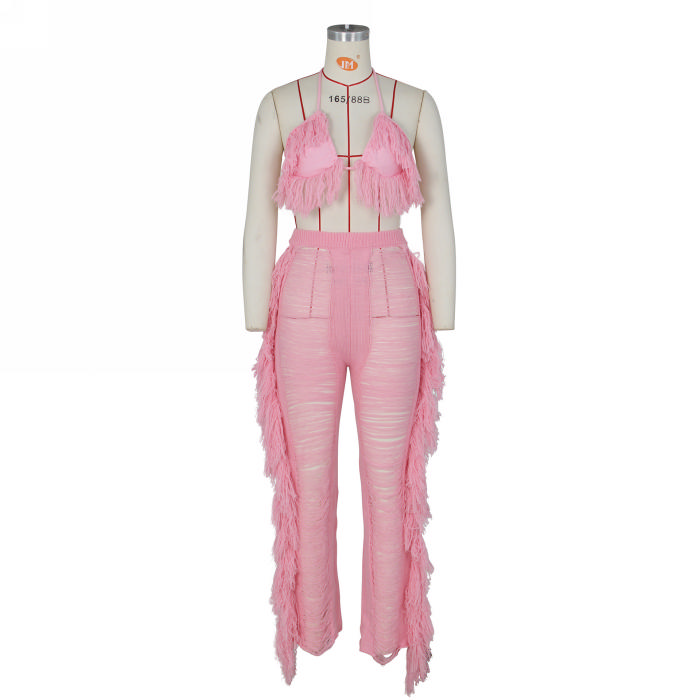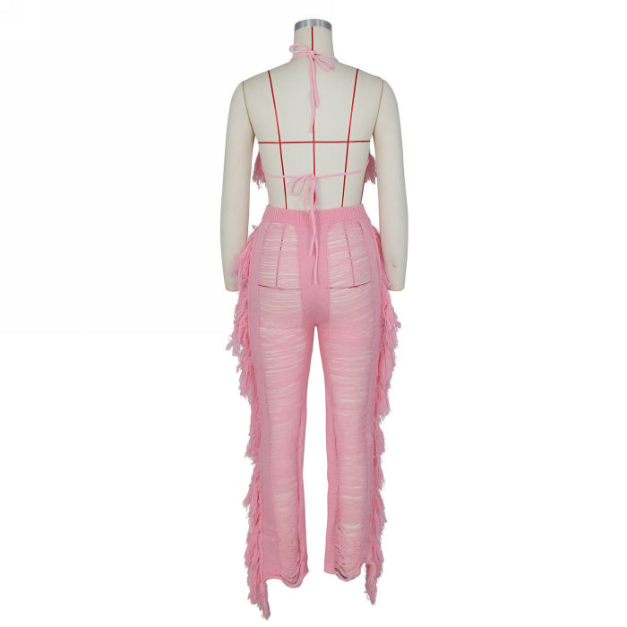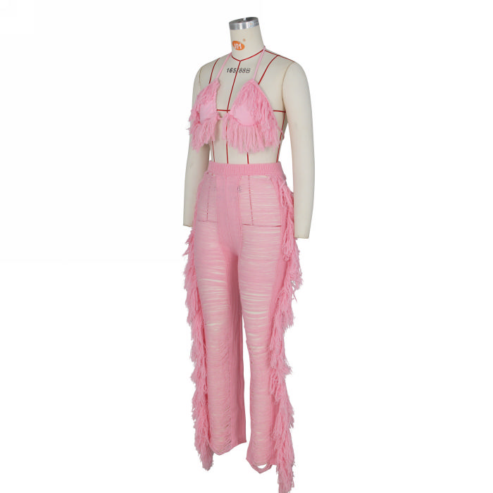 (Real Image)2023 Styles Women Sexy&Fashion Autumn/Winter TikTok&Instagram Styles Sweater Bar+Long Pants Ripped Two Piece SuitSKU: #XF23053-7