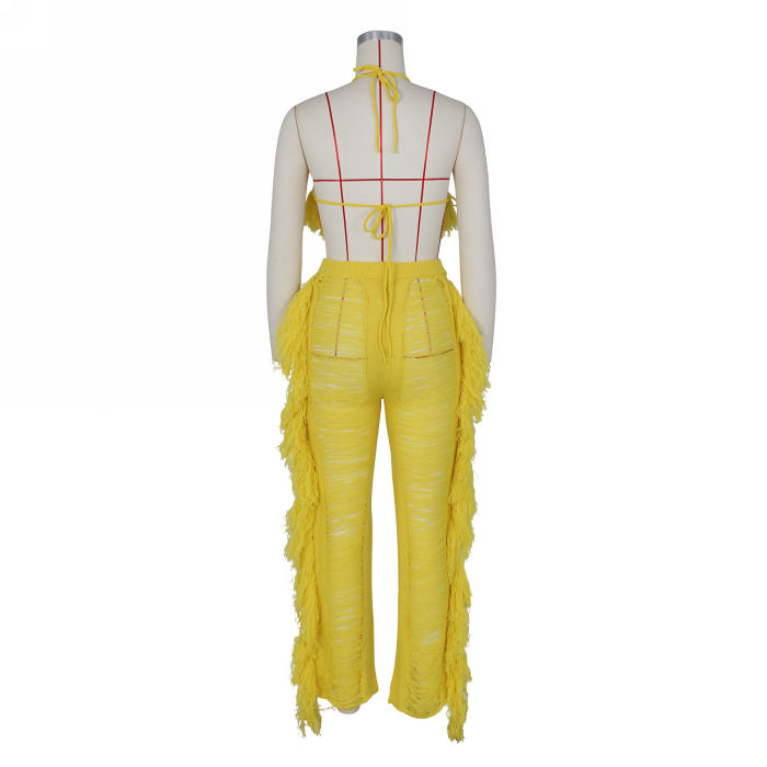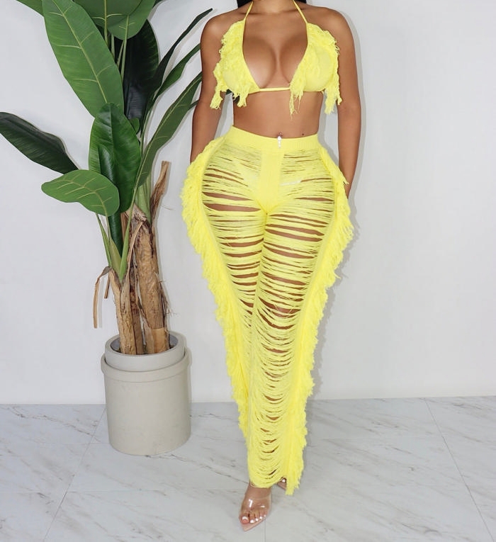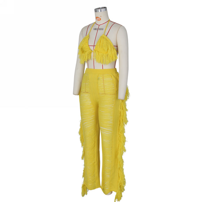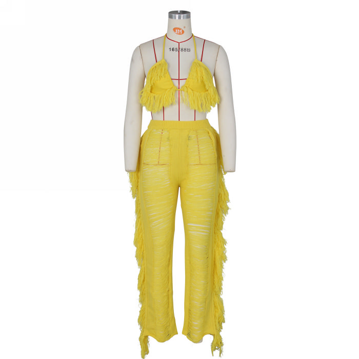 (Real Image)2023 Styles Women Sexy&Fashion Autumn/Winter TikTok&Instagram Styles Sweater Bar+Long Pants Ripped Two Piece SuitSKU: #XF23053-5