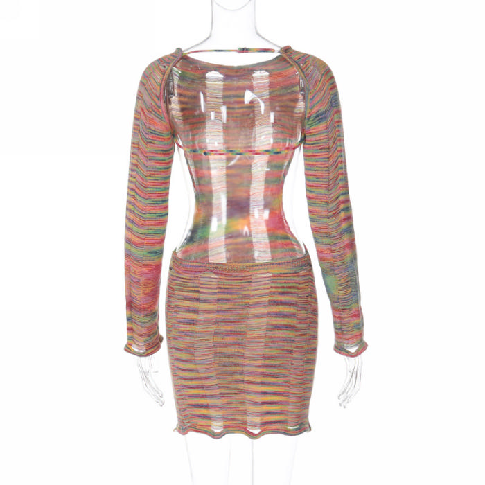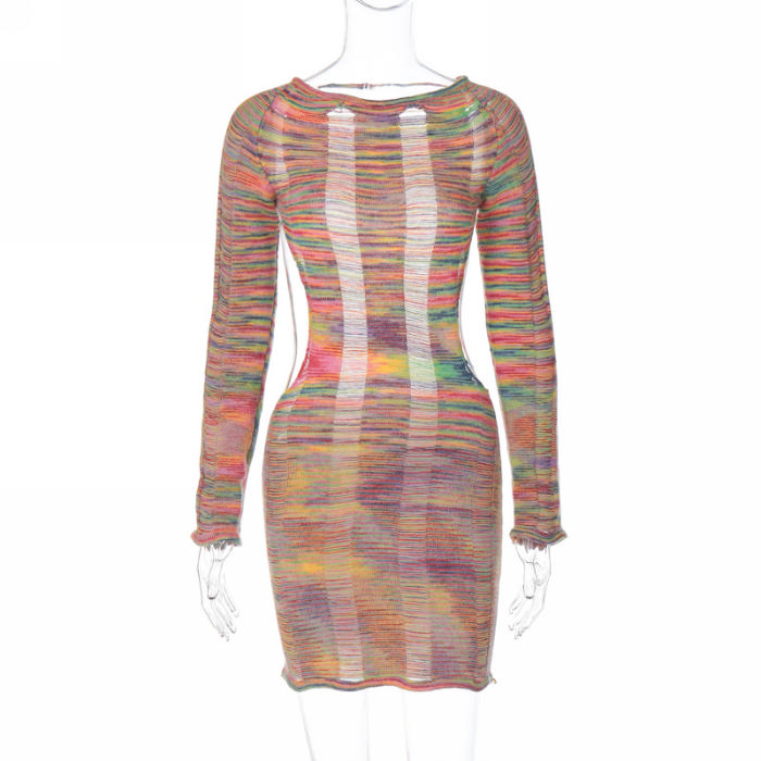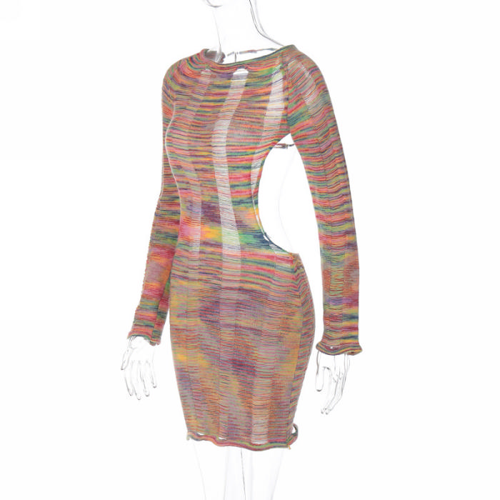 (Real Image)2023 Styles Women Sexy&Fashion Autumn/Winter TikTok&Instagram Styles Sweater Colorful Long Sleeve Backless Mini DressSKU: #CF88185-1