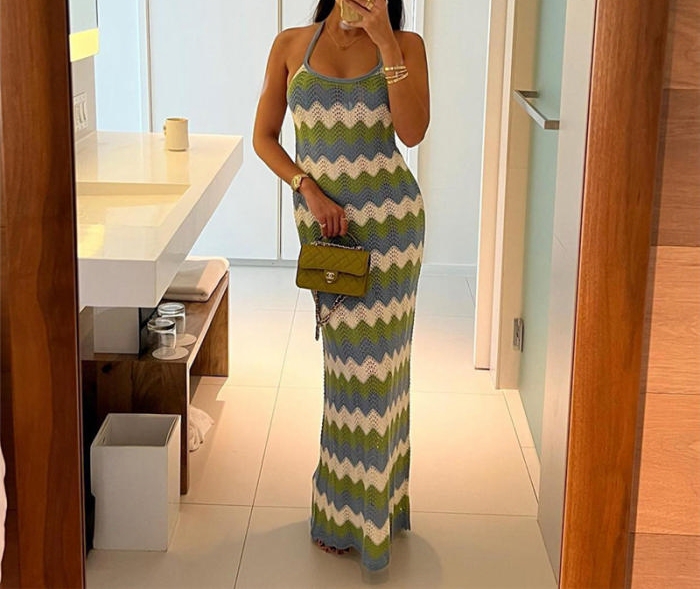 (Real Image)2023 Styles Women Sexy&Fashion Autumn/Winter TikTok&Instagram Styles Sweater Contrast Color Maxi DressSKU: #CF83264-1