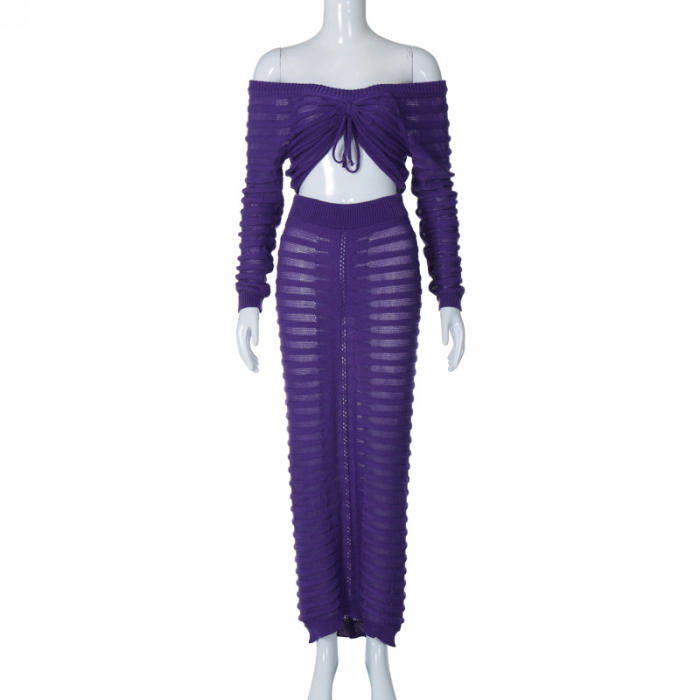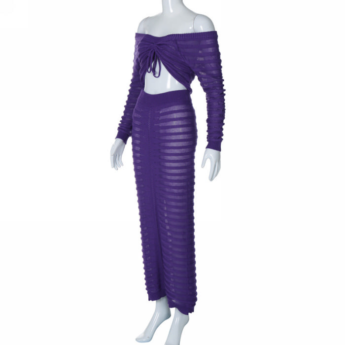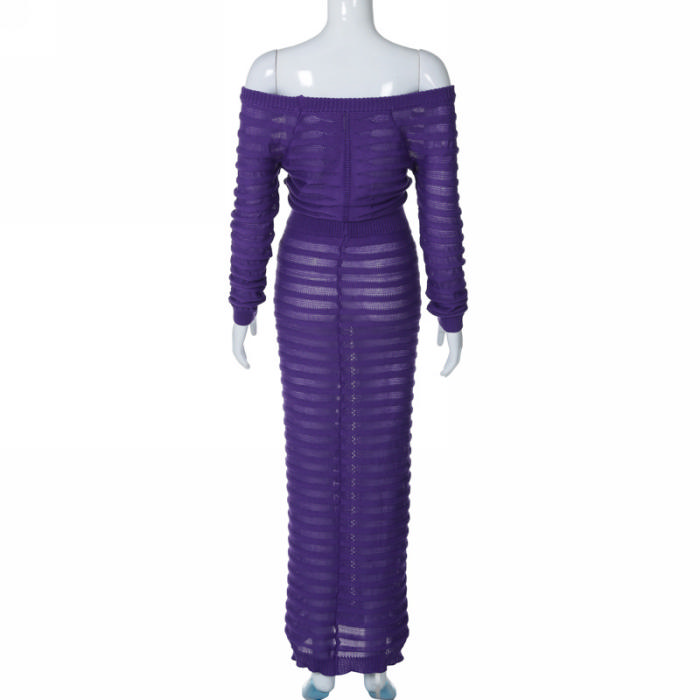 (Real Image)2023 Styles Women Sexy&Fashion Autumn/Winter TikTok&Instagram Styles Sweater Purple Long Sleeve Two Piece Maxi DressSKU: #CF88184-1