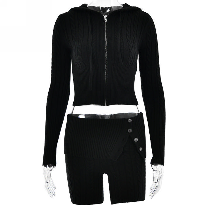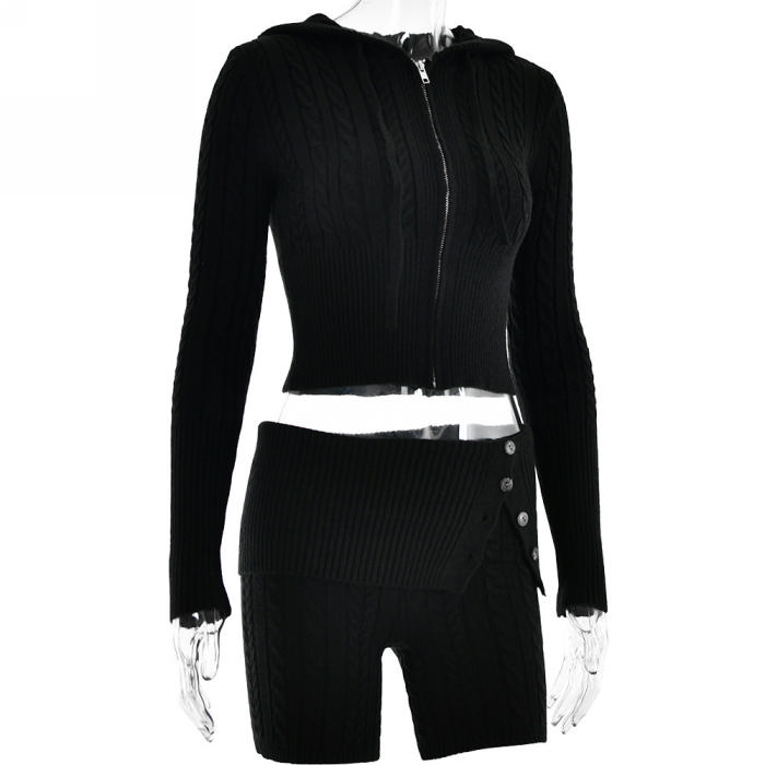 (Real Image)2023 Styles Women Sexy&Fashion Autumn/Winter TikTok&Instagram Styles Sweater Short Two Piece SuitSKU: #XF62640-1