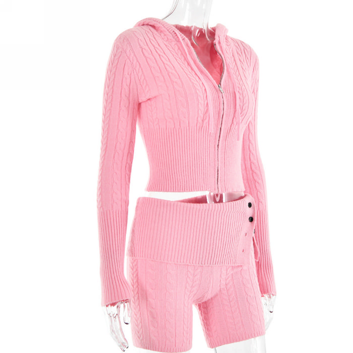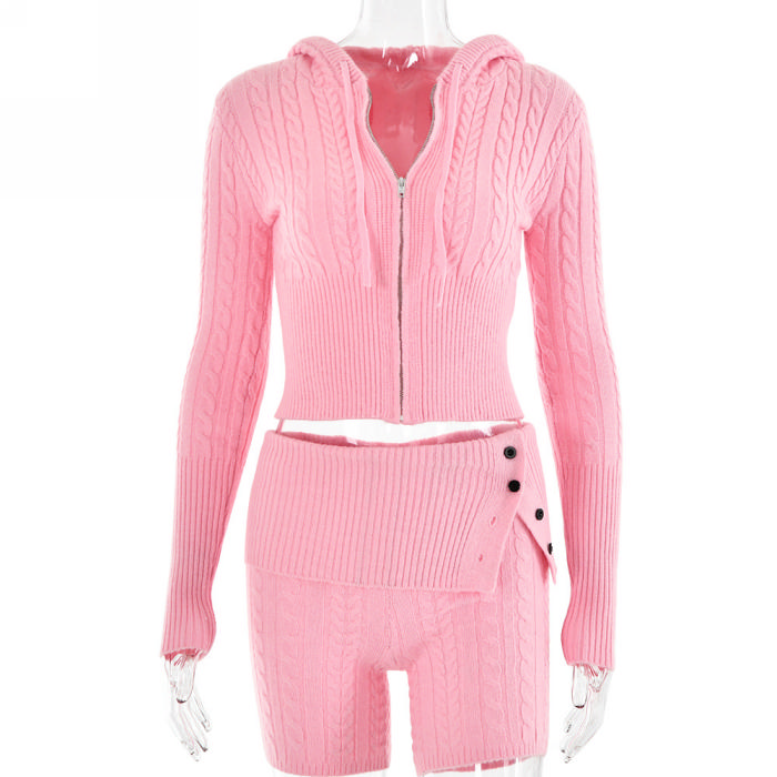 (Real Image)2023 Styles Women Sexy&Fashion Autumn/Winter TikTok&Instagram Styles Sweater Short Two Piece SuitSKU: #XF62640-2