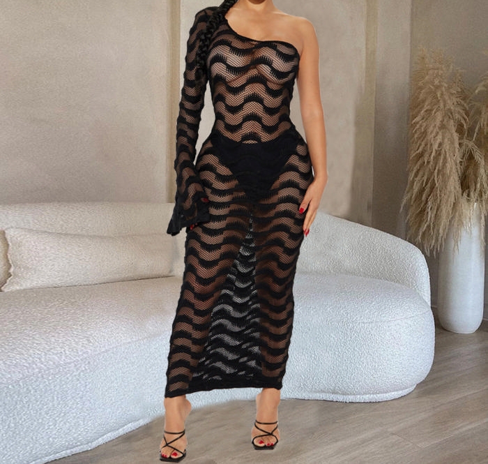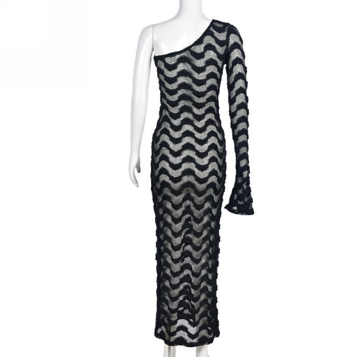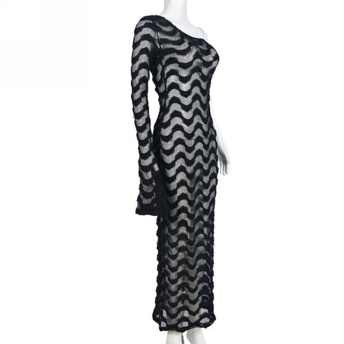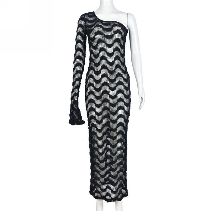 (Real Image)2023 Styles Women Sexy&Fashion Autumn/Winter TikTok&Instagram Styles Sweater Single Shoulder Long Sleeve Maxi DressSKU: #CF59792-1