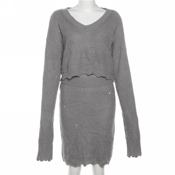 (Real Image)2023 Styles Women Sexy&Fashion Autumn/Winter TikTok&Instagram Styles Sweater Two Piece DressSKU: #CF83279-1