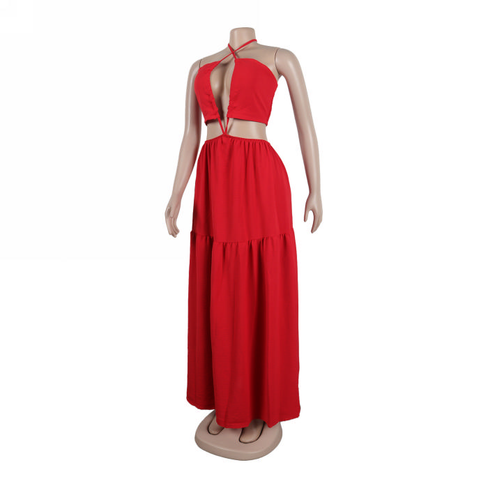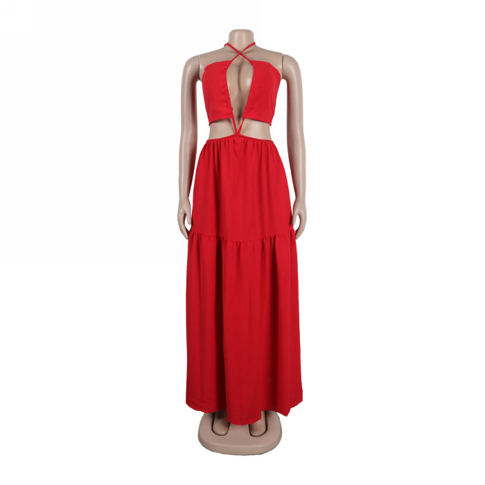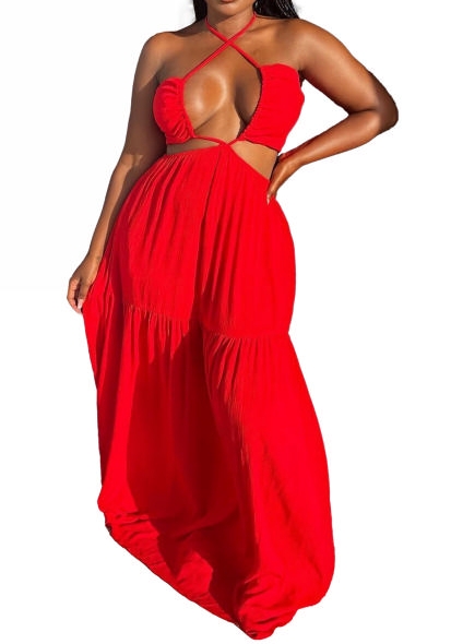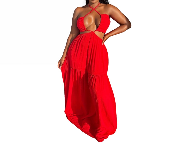 (Real Image)2023 Styles Women Sexy&Fashion Autumn/Winter TikTok&Instagram Styles Tie Cut Out Maxi DressSKU: #XF27459-2