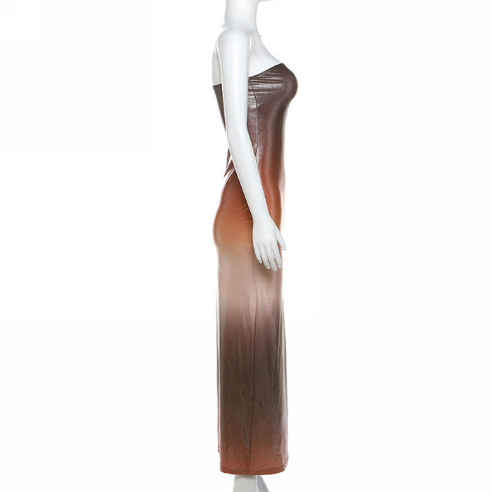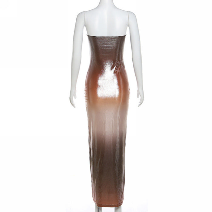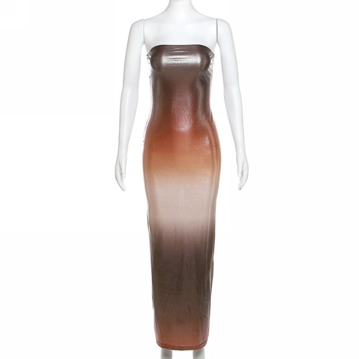 (Real Image)2023 Styles Women Sexy&Fashion Autumn/Winter TikTok&Instagram Styles Tube Brown Maxi DressSKU: #CF77753-1