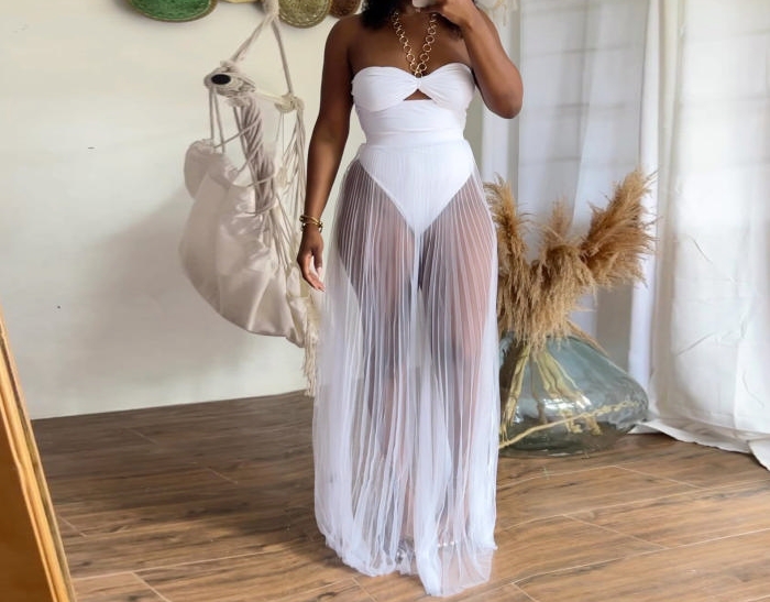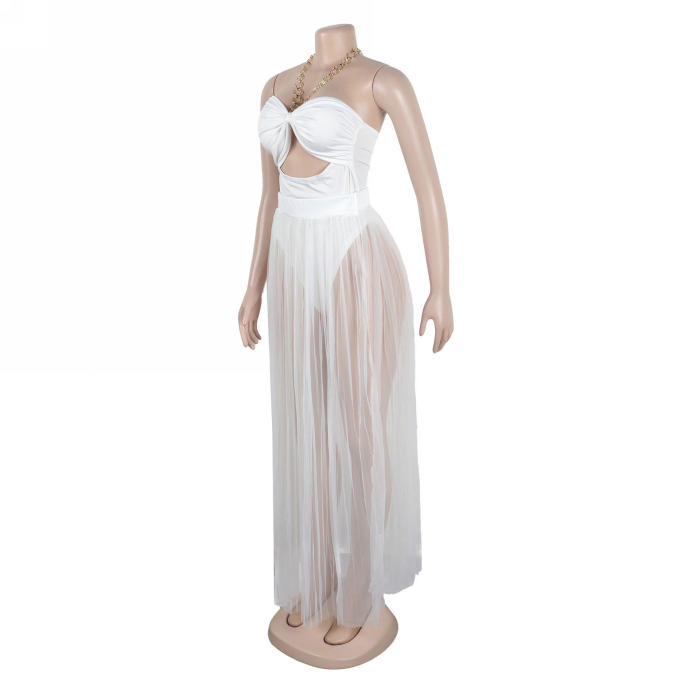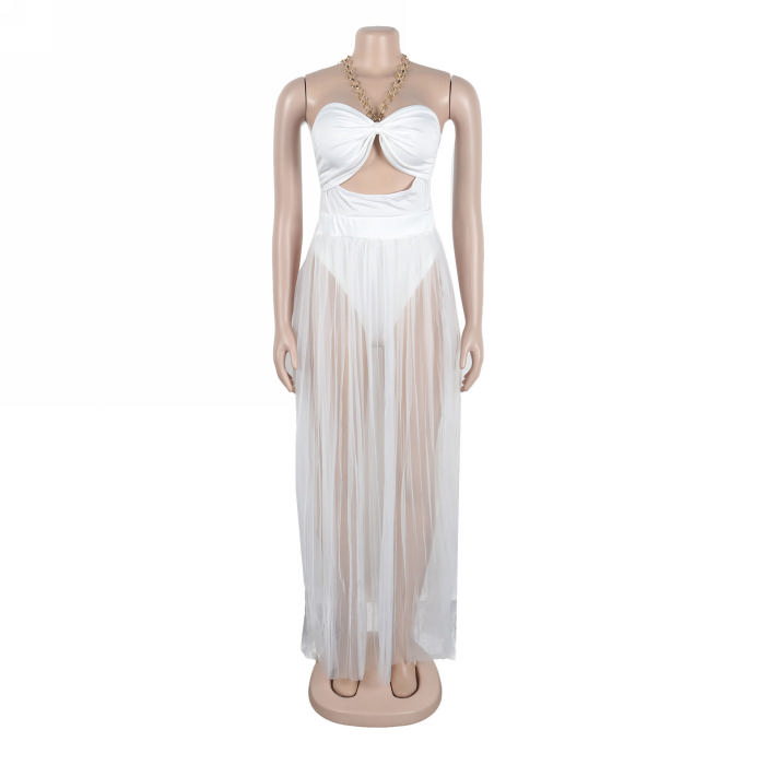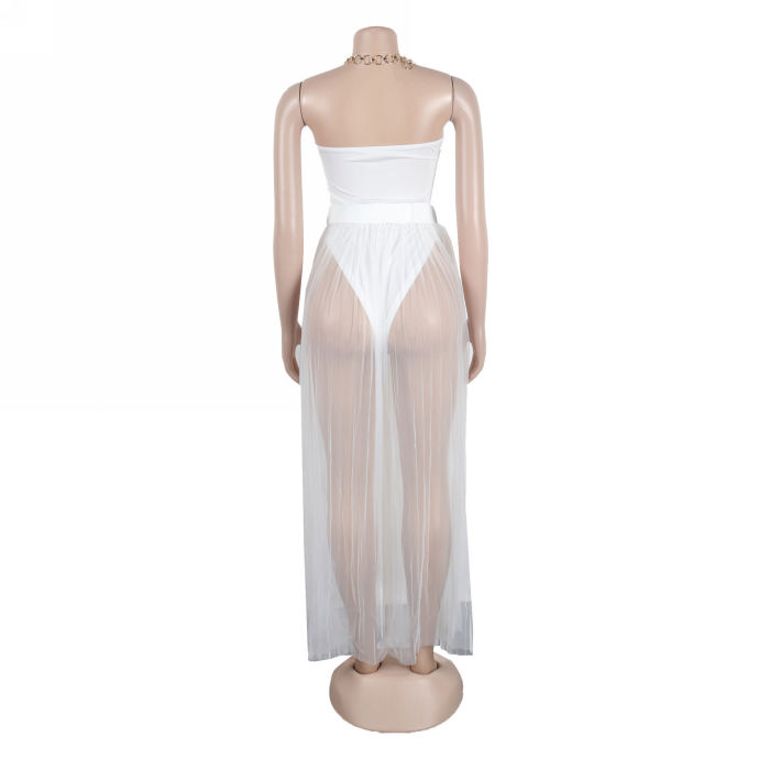 (Real Image)2023 Styles Women Sexy&Fashion Autumn/Winter TikTok&Instagram Styles Tube Mesh Maxi DressSKU: #XF27460-1