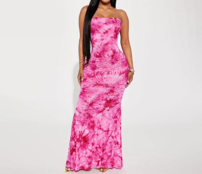 (Real Image)2023 Styles Women Sexy&Fashion Autumn/Winter TikTok&Instagram Styles Tube Print Maxi DressSKU: #OU2876-1