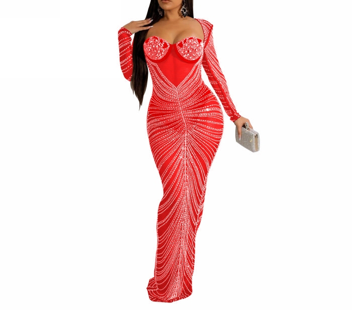 (Real Image)2023 Styles Women Sexy&Fashion Autumn/Winter TikTok&Instagram Styles Tube Sequins Maxi DressSKU: #XF73035-3