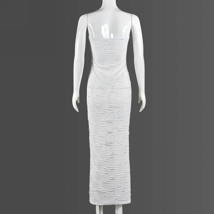 (Real Image)2023 Styles Women Sexy&Fashion Autumn/Winter TikTok&Instagram Styles Tube White Maxi DressSKU: #CF59762-1