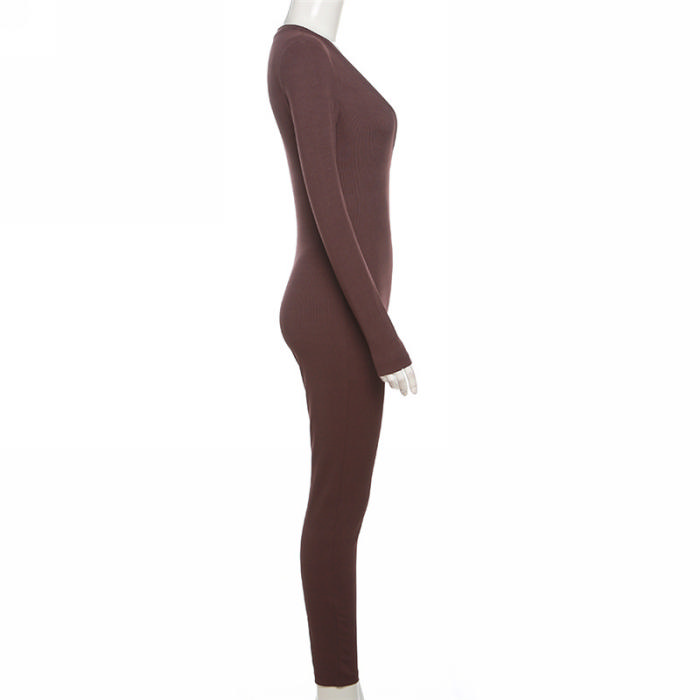 (Real Image)2023 Styles Women Sexy&Fashion Autumn/Winter TikTok&Instagram Styles V Neck Long Sleeve JumpsuitSKU: #CF77757-1
