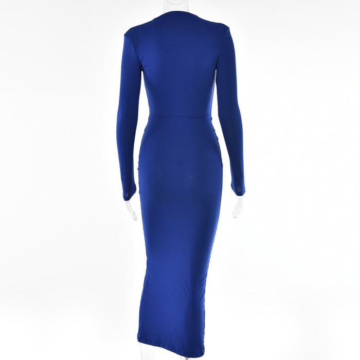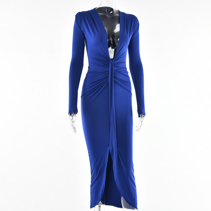 (Real Image)2023 Styles Women Sexy&Fashion Autumn/Winter TikTok&Instagram Styles V Neck Long Sleeve Maxi DressSKU: #XF62617-4